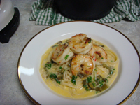 Pasta with White Wine and Cream Sauce and Marinated Prawns